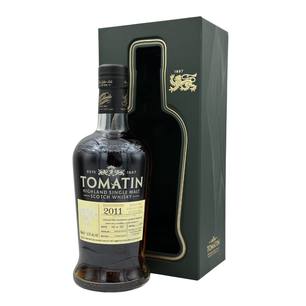 Tomatin 2011 13 ani o imbuteliere speciala pentru Whisky Fest România 2025 și Rifco Trading.Prima umplere Oloroso Sherry Hogshead, nefiltrat la rece, la tăria butoiului, doar 183 de sticle disponibile.